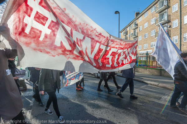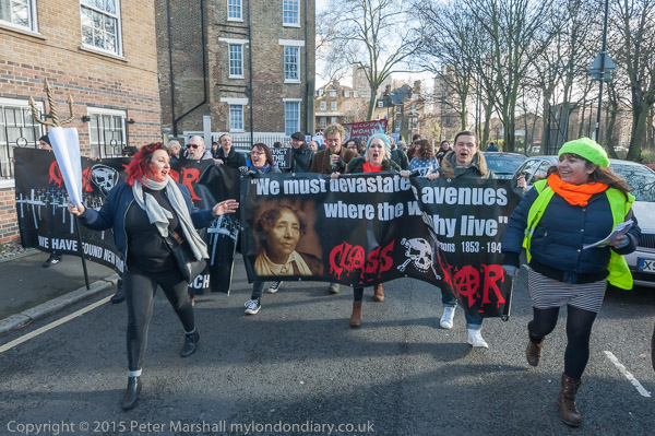 and goes down a back street in Lambeth, where Class War do the Lambeth Walk