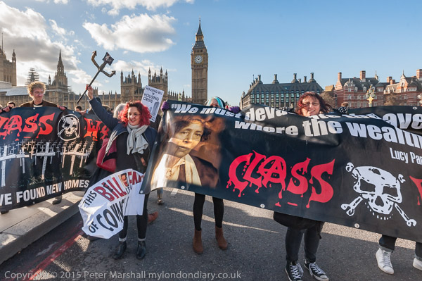 Class War on Westminster Bridge with banners and trident
