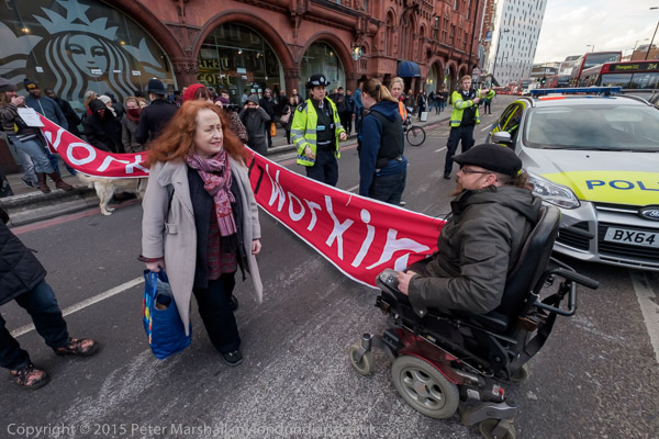 One of the police loses her temper a little on City Rd and started pushing Andy and his scooter around - and another officer talks with her