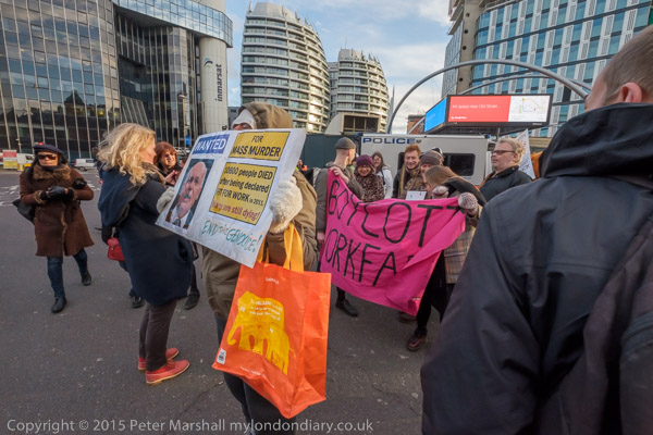The protesters are in two groups, on the Old St roundabout and others blocking the route off the roundabout up City rd