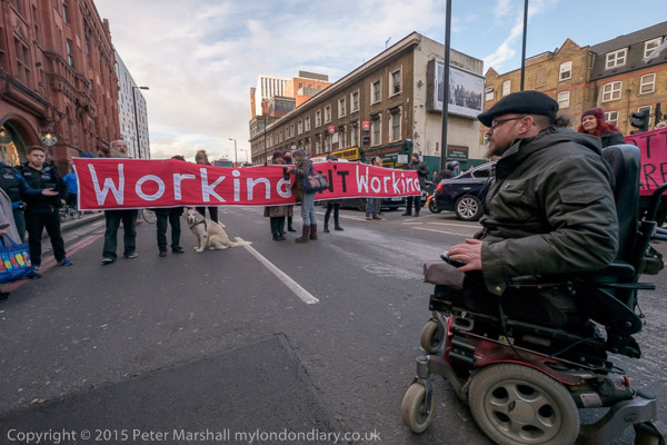 The protesters move on to the Old St roundabout, stopping the traffic on one of London's busiest roundabouts