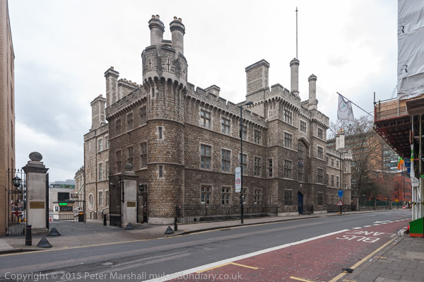 The Honourable Artillery Company frontage on the City Rd - the trees to the right are in Bunhill Fields