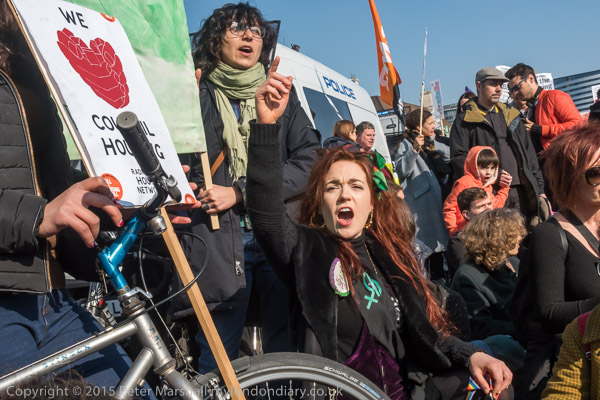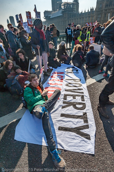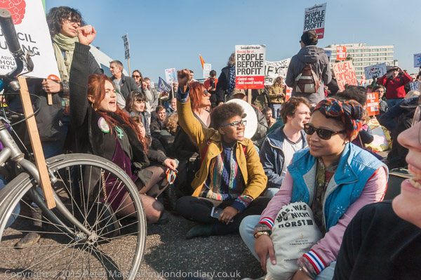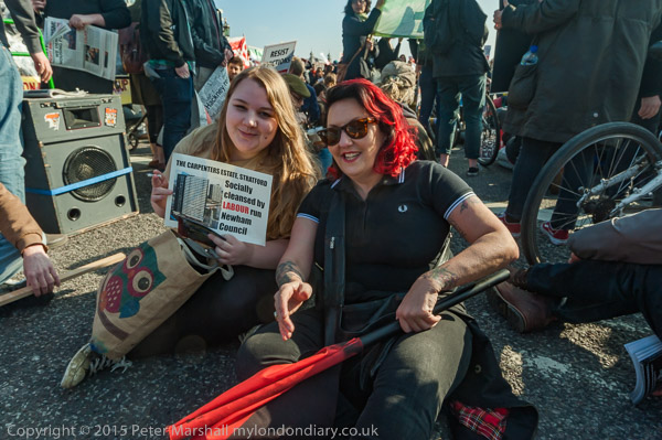 Jasmin Stone of Focus E15 and Lisa McKenzie of Class War in the sit-down on Westminster Bridge