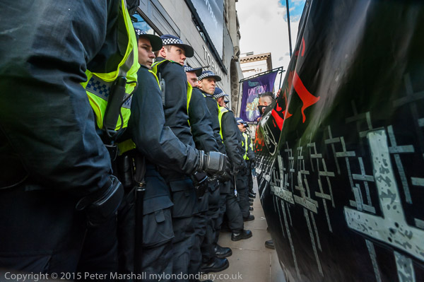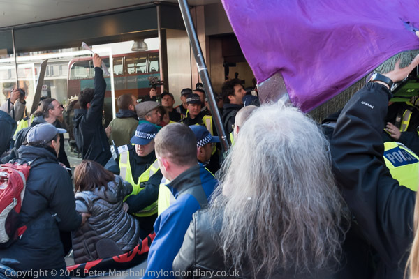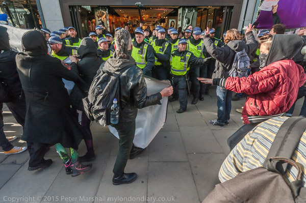 The protesters decide to move, and stand briefly in the middle of Oxford Circus