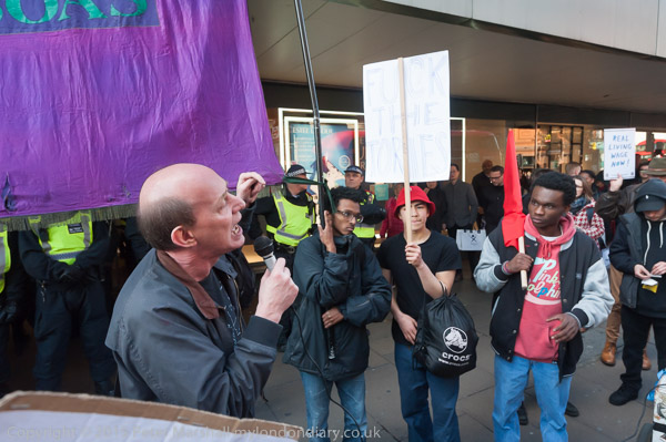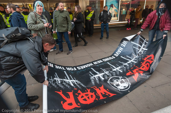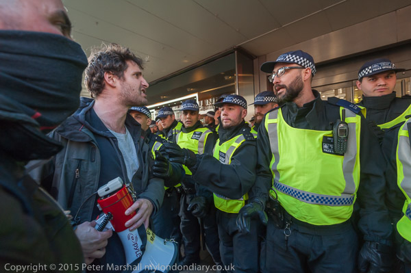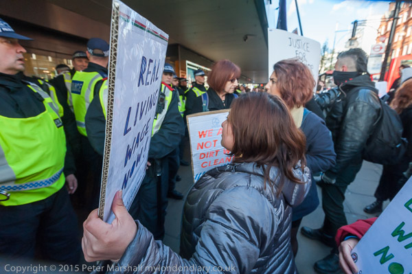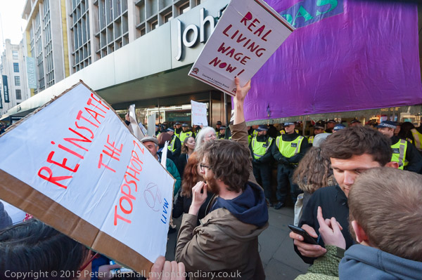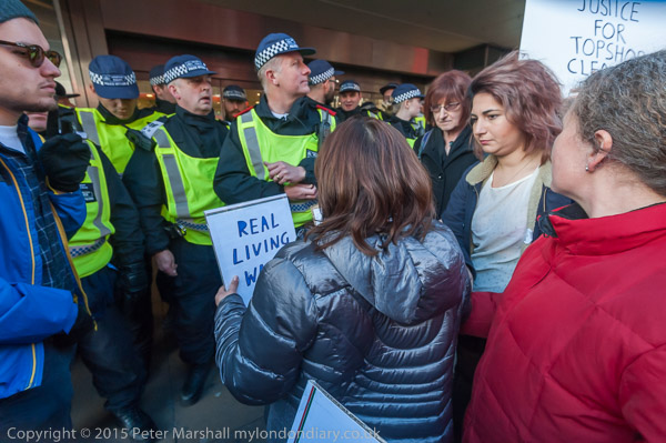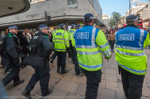 Police move away after the protesters who are going back to Topshop. But It's time for me to go home.