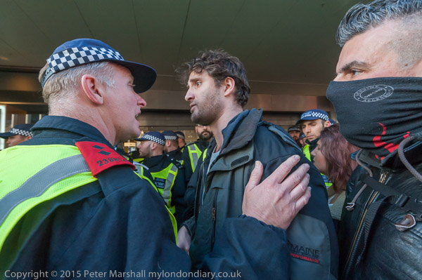 the leaving protesters and there are not enough of them to prevent us taking pictures.