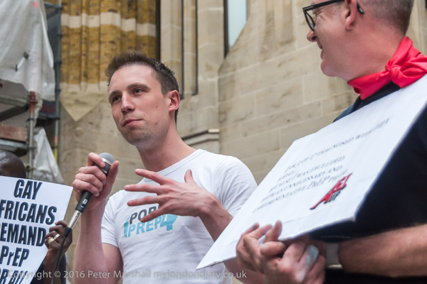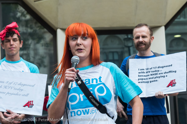 A speaker has a chart comparing the monthly cost of PrEP. Gilead charge the NHS more than 10 times the open market price