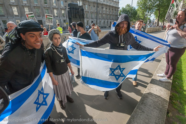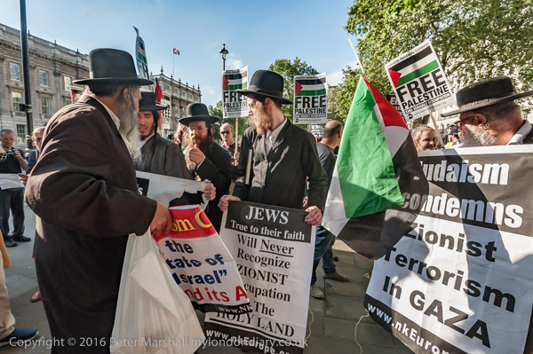 Neturei Karta Jews arrive to support the protest. The say 'Jews true to their fiath WIll Never Recognise Zionist
