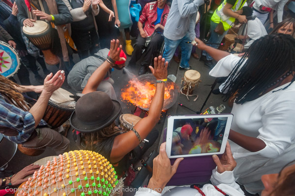 and then the flames rise up as a white rum is poured onto the fire, a small measure at a time
