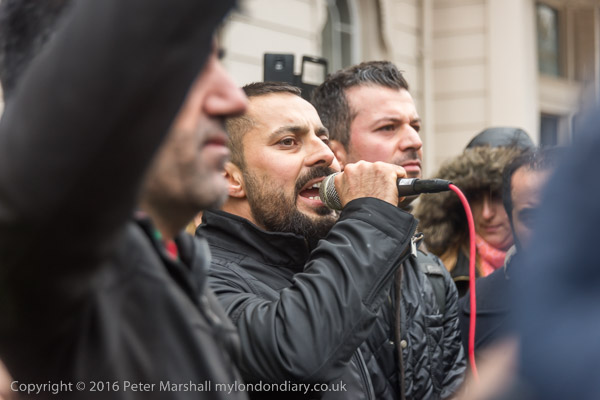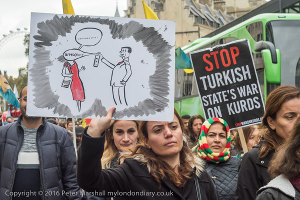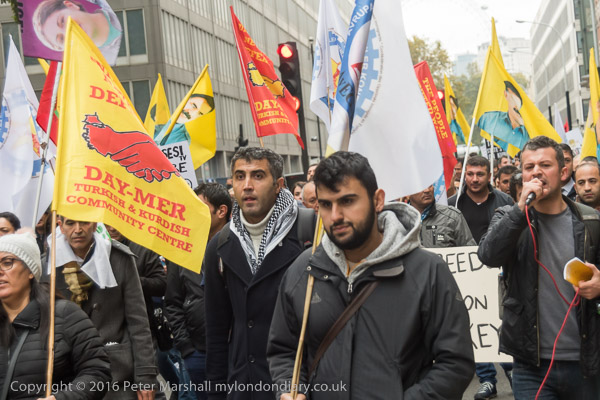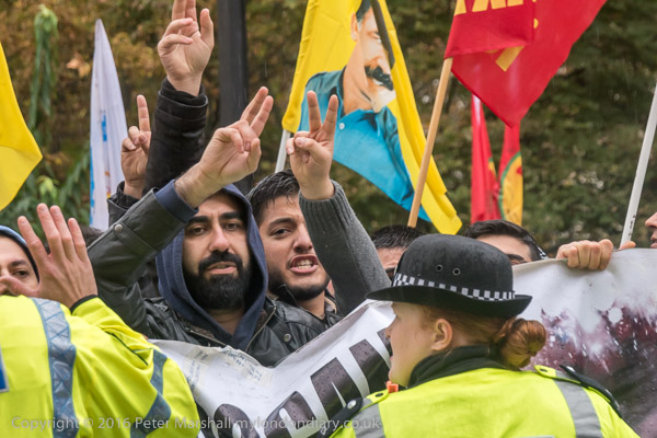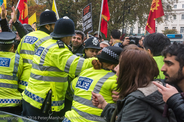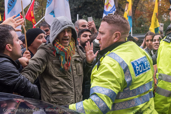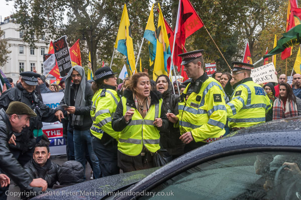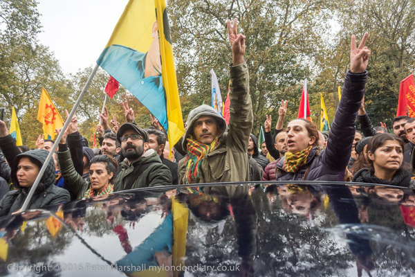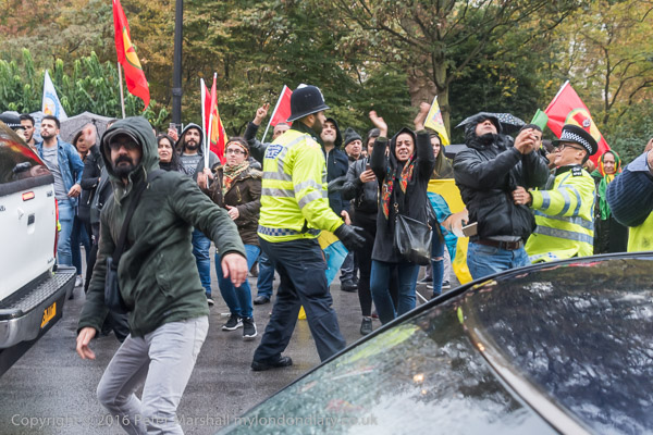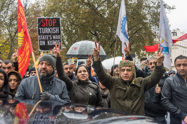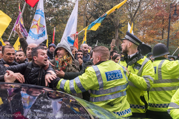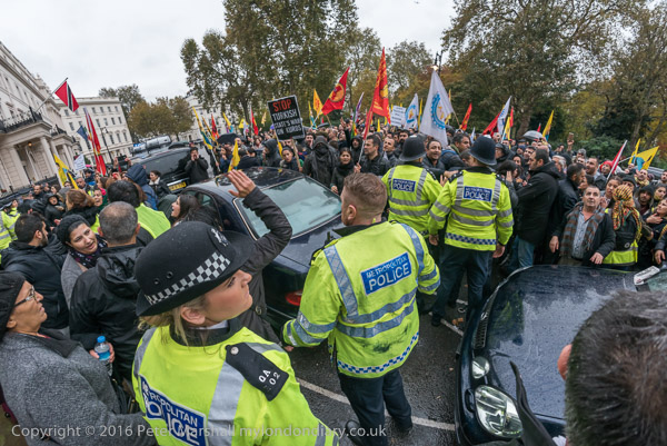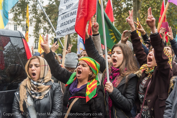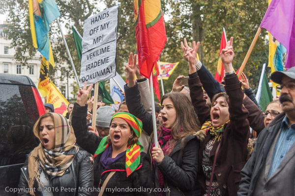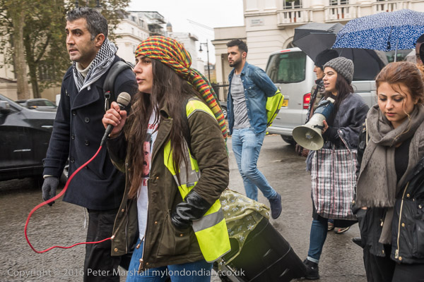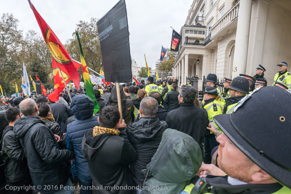 The protesters march up to the Turkish Embassy in Belgrave Square