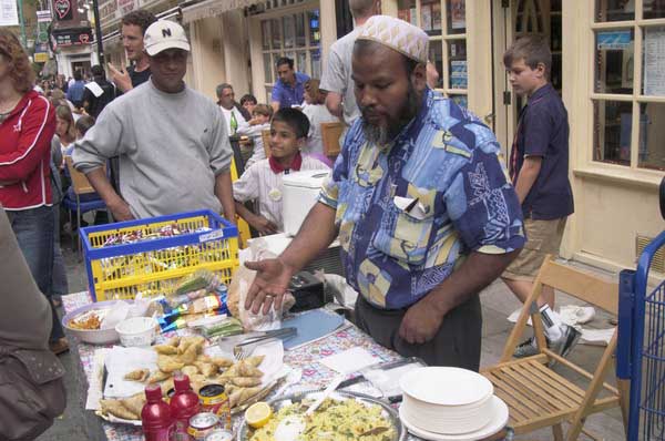![]() One of many food stalls in Brick Lane, Spitalfields, for the festival |