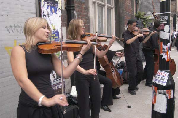 ![]() A string section entertain on Brick Lane, Spitalfields |