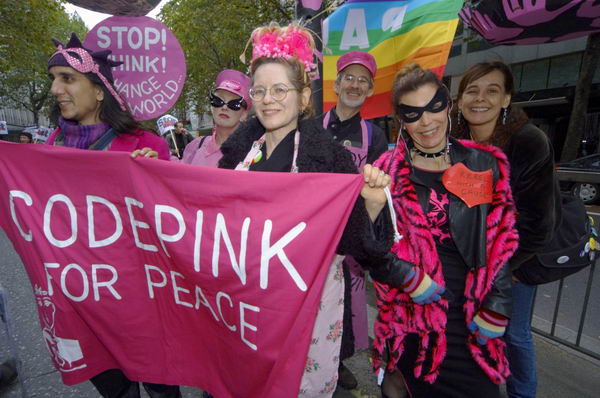 Codepink supporters pose for a picture in Kingsway |
