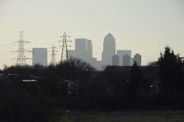 ![]() Canary Wharf towers from Eastway Cycle Circuit |
