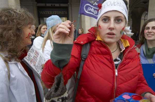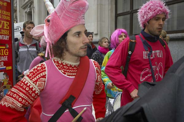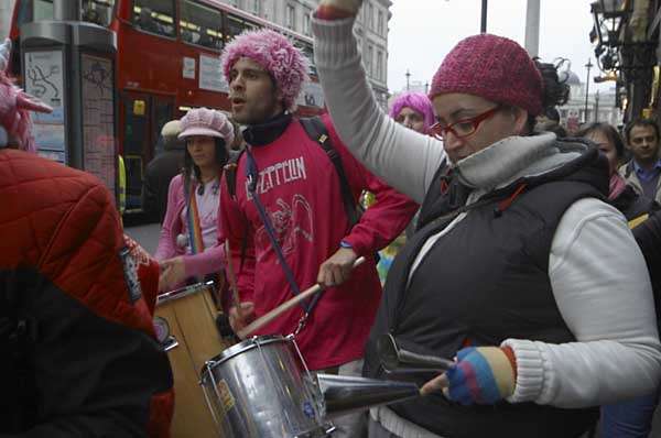 ![]() Samba band members making their way to demonstrate at the Treasury |