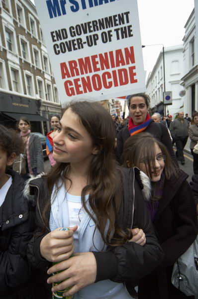 ![]() Young British Armenians with a poster they have made about the Armenian genocide. |