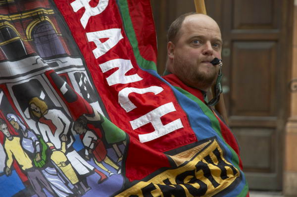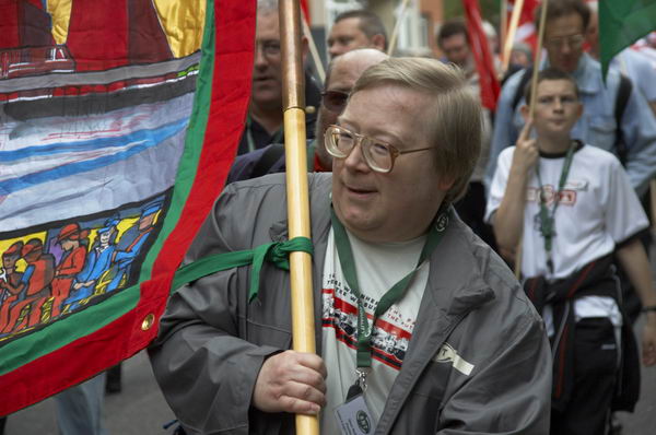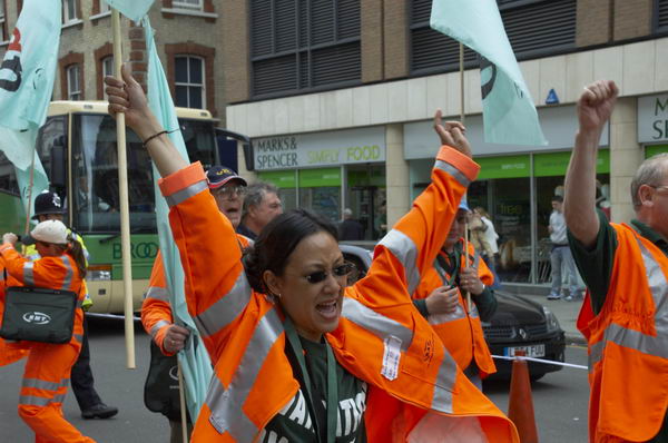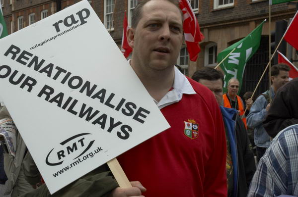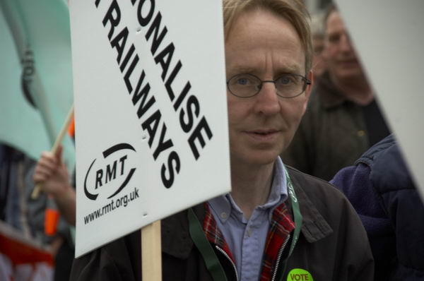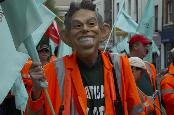 RMT march to Renationalise the RailwaysMarble Arch, London, 30 April, 2005.![]() Tony Blair is unfortunately not in favour of rail privatisation. |