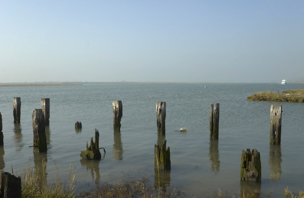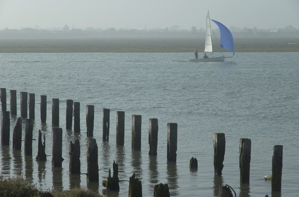 ![]() Sailing up the creek, with Canvey Island in the distance. |