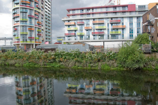 Willow, Waterworks River, Bridgewater Road Bridge and new flats, Stratford