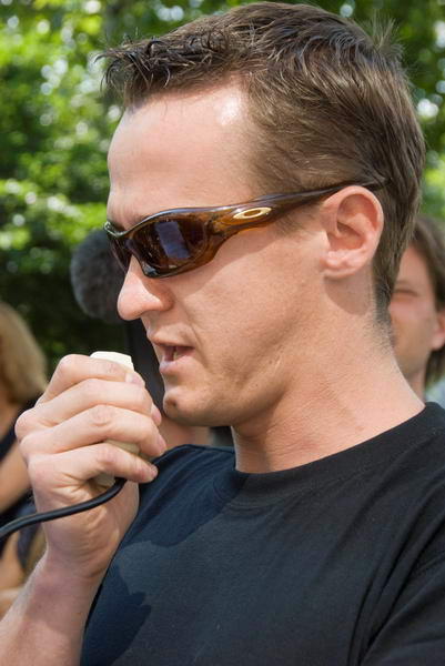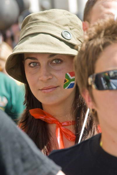 ![]() ![]() Right: Shannon Joubert whose brother was murdered in Durban, spoke briefly at the start of the march ![]() Some of the marchers had the South African flag painted on their faces |