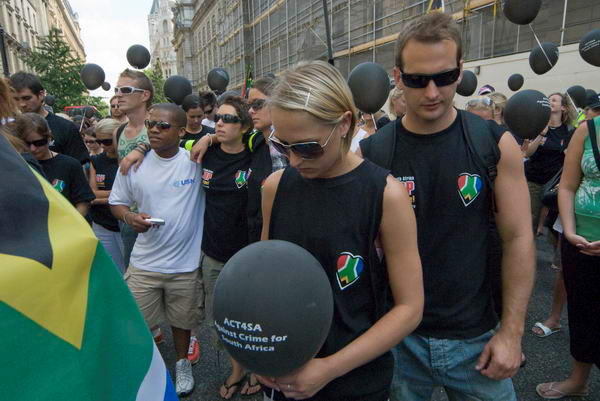 ACT4SA March Against Crime in South AfricaWestminster, London. Saturday 11 August, 2007![]() The marchers were predominantly white South Africans, but there were a few black faces |