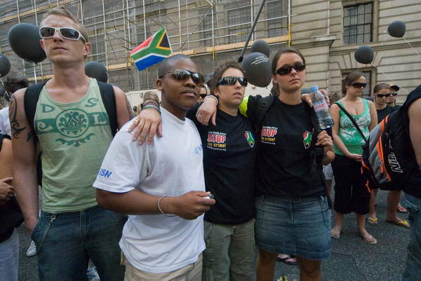 ![]() A minutes silence in Whitehal Place to remember the many killed in violent crime in South Africa |