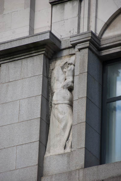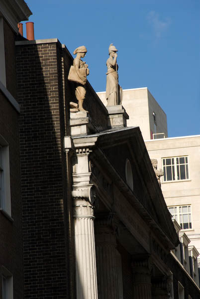 ![]() Left: Royal Society of Arts, John Adam St. Right: Remains of work by Sir Jacob Epstein on Zimbabwe House, Strand |