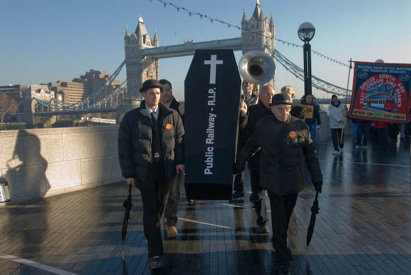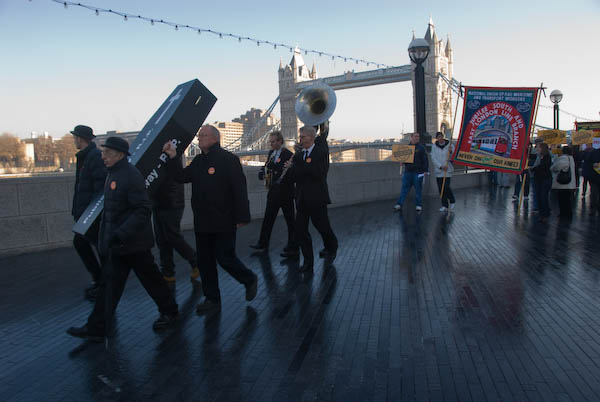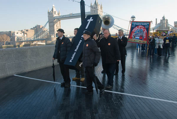 RMT Protests East London Line PrivatisationCity Hall, Southwark, London. Thursday 13 December