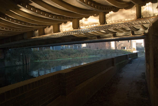 ![]() Northern Outfall Sewer glowing golden in the sunlight reflected from the Lea navigation |