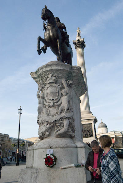 I didn't see the flowers being put on the plinth of the statue of Charles I at the southern end of Trafalgar Square