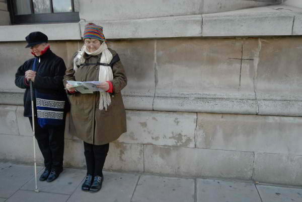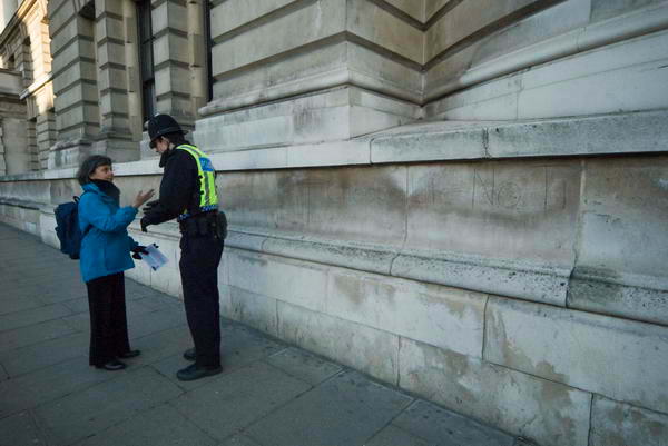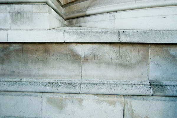 ![]() Choose Life Not T(rident) on the wall of the Old War Office in Whitehall. |
