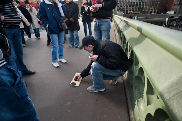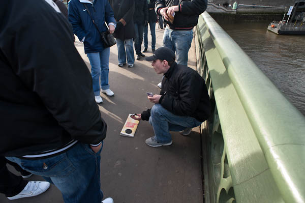 Three card trick on Westminster Bridge catches gullilble tourists.