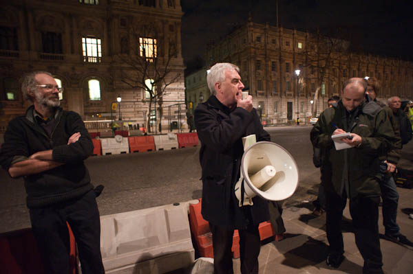 John McDonnell speaking opposite Downing St - Phil Thornhill listens at left