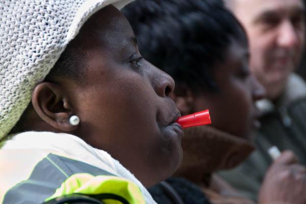 ![]() Whistles made a loud noise between chanting slogans |