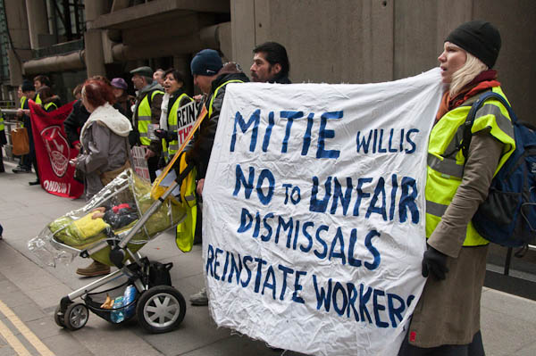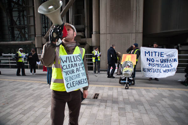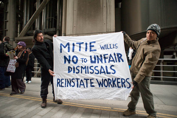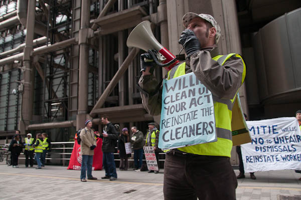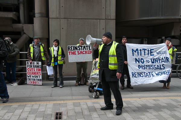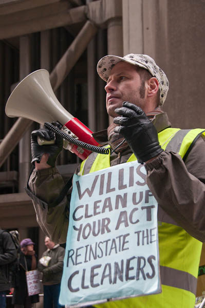 Cleaners for Justice demonstrate at WillisLime St, London. March 5, 2009