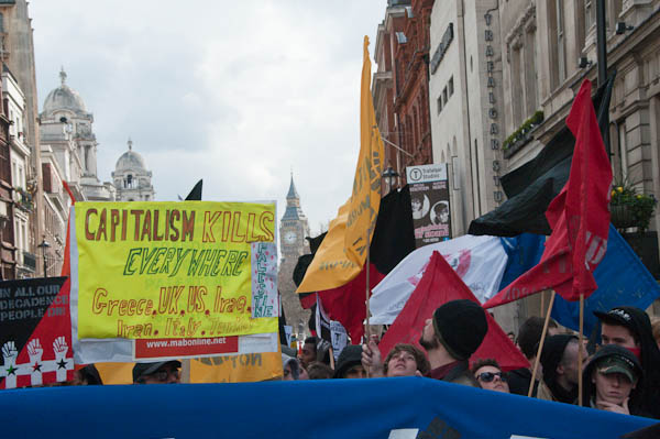 Capitalism Kills every where... Looking down Whitehall to Big Ben