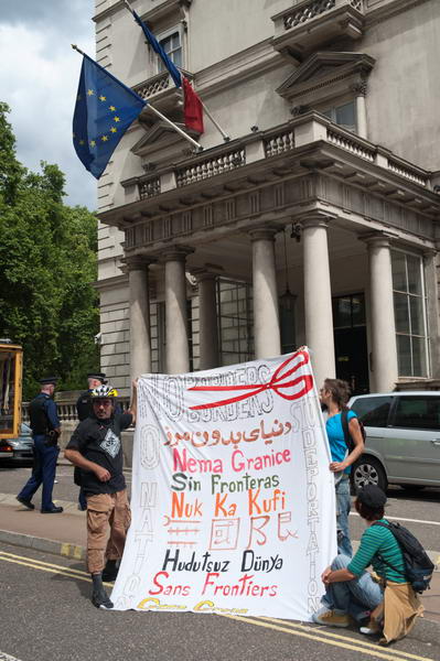 London Protest Against Calais ClearancesFrench Embassy, Albert Gate, London. Monday 20 July, 2009