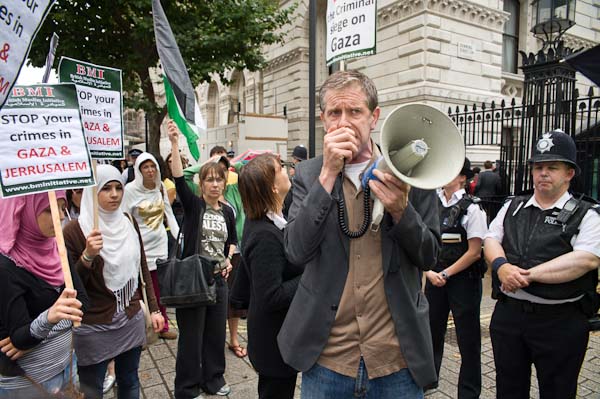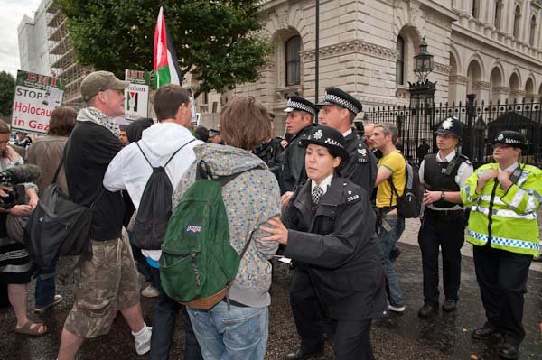 After police reinforcements arrived. Chris Nineham of Stop the War told everyone they should go back across the road - and was ignored