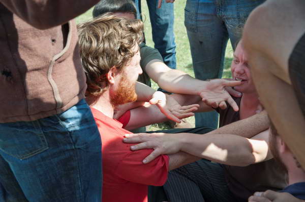 Discussing support for Vestas Blades with some of the Vestas workers taking part