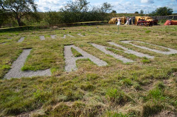 A message to passing pilots on the Airplot: "Our Climate Our Land"
