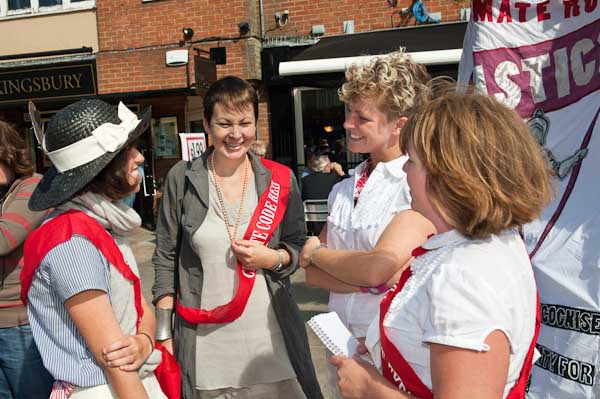 Caroline Lucas and Tamsin Omond arrive in the square