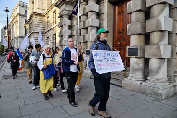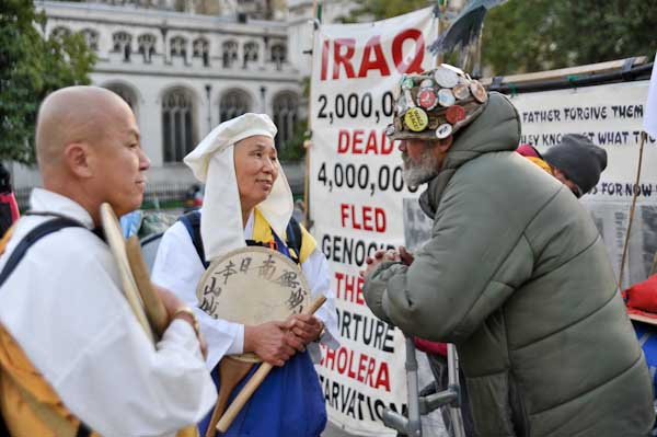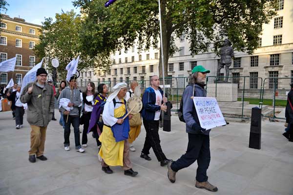 Were the marchers greeted Brian Haw and Barbara Tucker