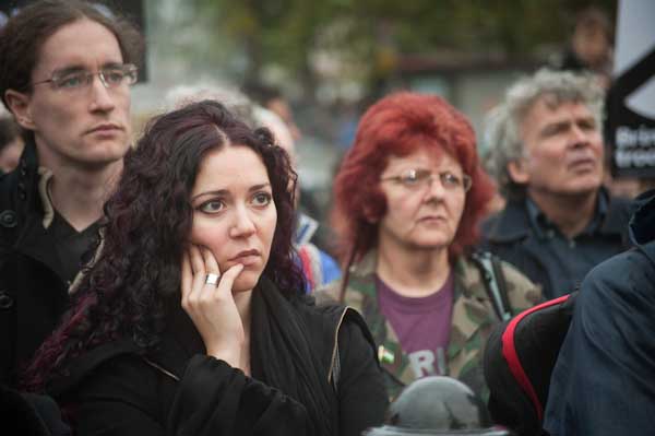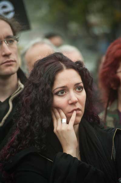While the speeches were being made there was a disturbance at the north end of the square and I ran to see what was happening. Police were escorting four men away and a couple of hundred people were following them, alleging they had been shouting insults at the speakers