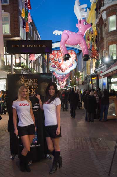 ... was a condom promotion with these two young ladies posing in front of a stand saying 'Join the Revolution' and 'Stand up for bEtter seX'