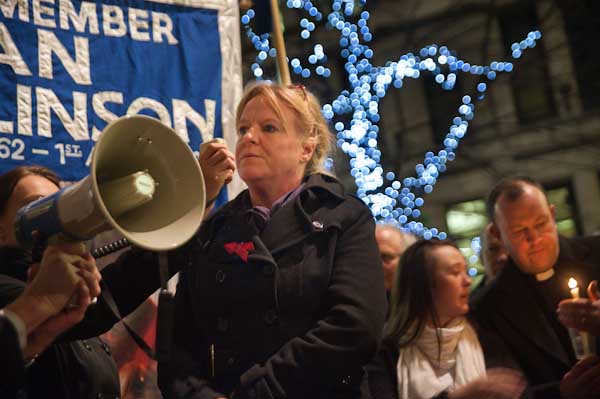 ![]() Samantha Rigg speaks about her brother Sean. Marcia stands at her side. The family demand justice |