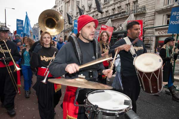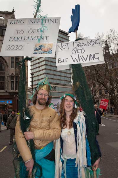 King Neptune and a familiar face with a record-length placard - against injustice and pverty.