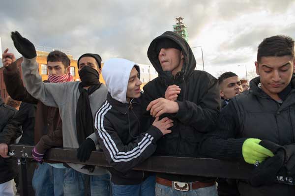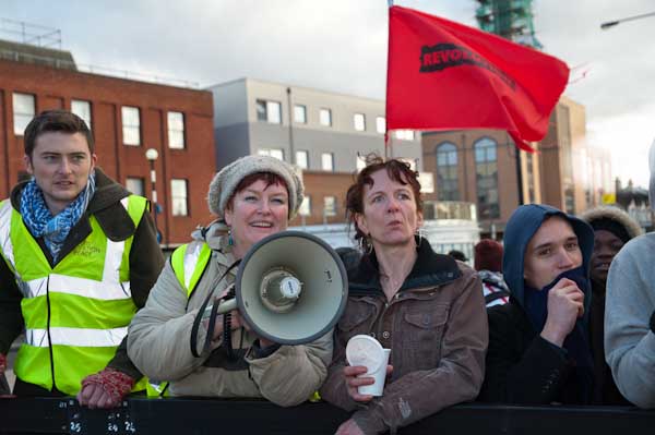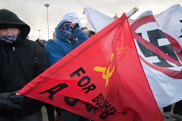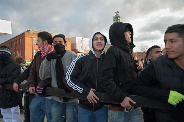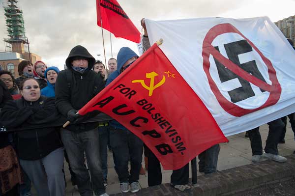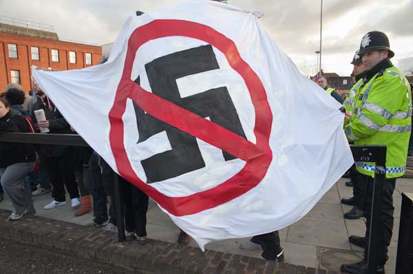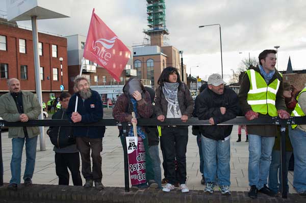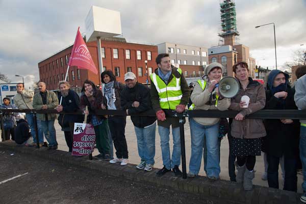 Around 2pm when the EDL/SIOE rally was due to start some of the protesters moved where they could see all six of them in the car park