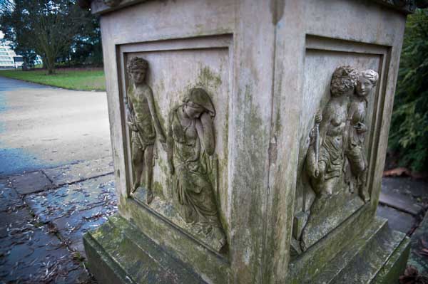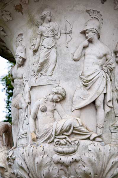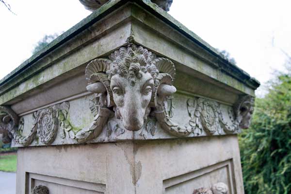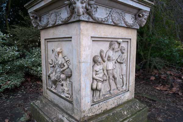 This is a copy of a 1st century AD vase which was discovered at the Villa Medici Rome around 1600 and, considerably restored, is now in the Uffizi gallery, Florence. The Kew copy is in Coade Stone, made around 1825 at Lambeth.