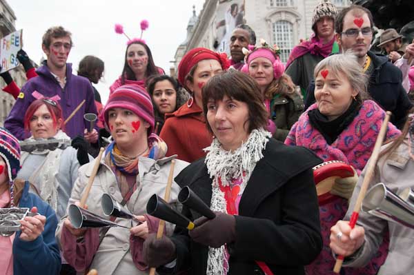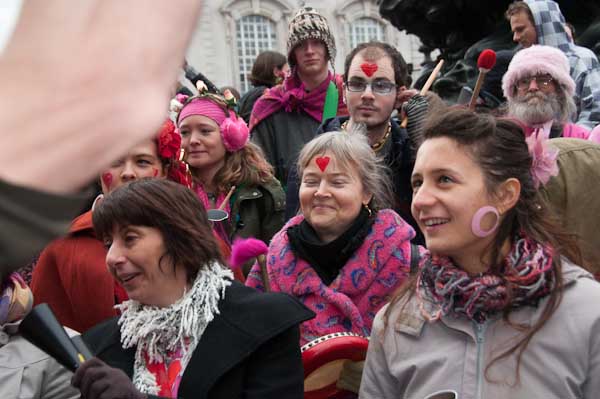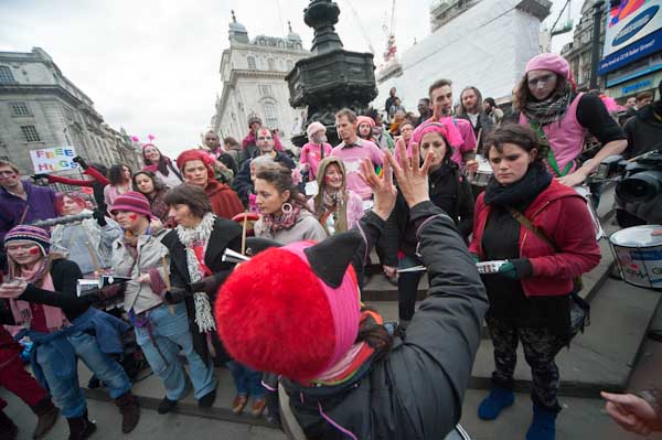 There were around 30 people in the Rhythms of Resistance drum band