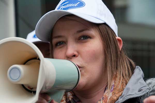 Plaid Cymru Assembly Member Bethan Jenkins had joined workers on their early morning coach journey from Swansea.